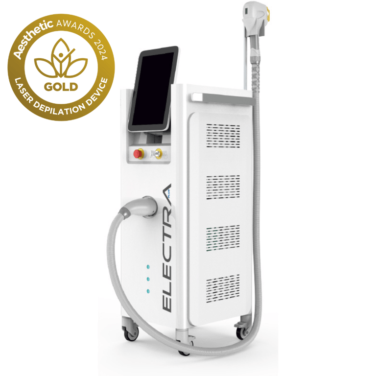 Electra Plus is an advanced multi-wavelength diode laser system designed for fast, safe and effective permanent hair removal. Using three wavelengths (755 nm Alexandrite, 808 nm Diode, and 1064 nm Nd:YAG), it allows treatments on all skin types and body areas with maximum precision and comfort. The powerful cooling system ensures safe procedures and an enhanced patient experience.